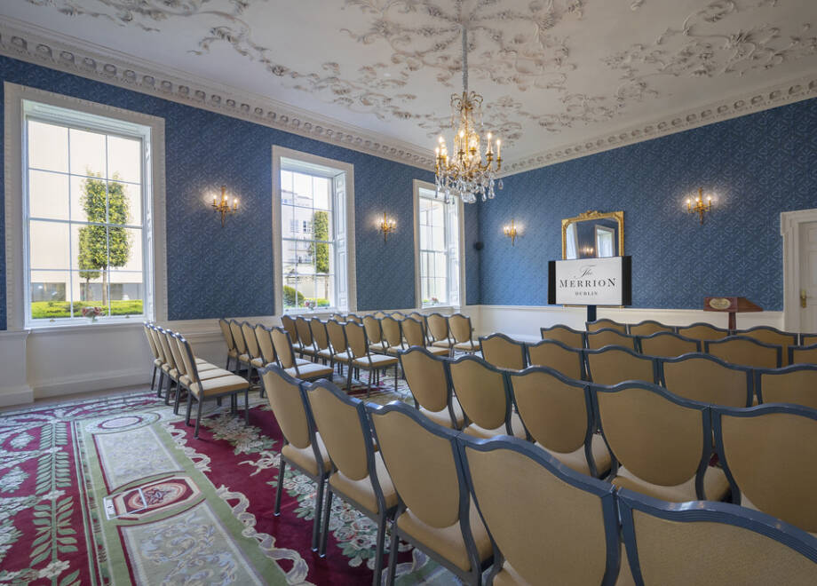The Merrion is Dublin city centre’s foremost five star business hotel, with excellent facilities for high-level business meetings and private corporate entertaining. House No. 24 in the Main House has six gracious salons with period features, each named after an historical figure connected to the original buildings. These rooms vary in size and decoration, and can be used either separately or in combination, according to requirements. The Pembroke can accommodate 16 for a board meeting or 20 for a private meal, while The Wellington can host up to 100 people for a standing reception, and 50 for a seated meeting.